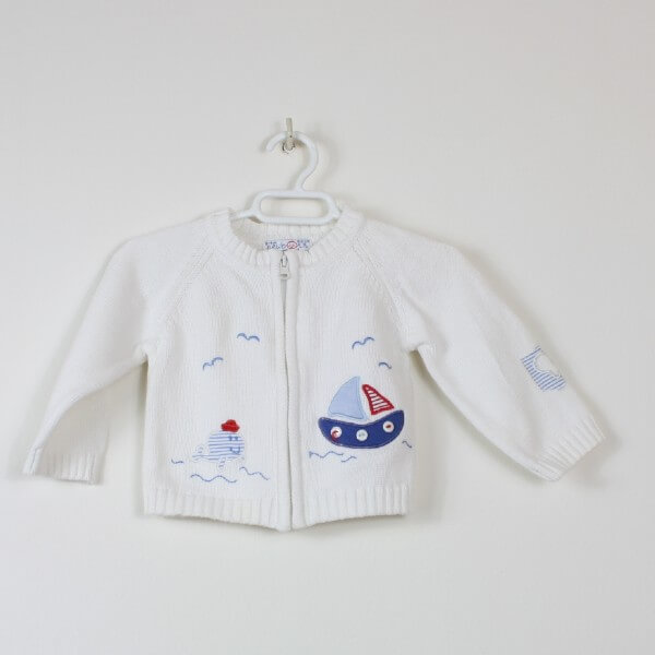 El estado de esta chaqueta de punto para niño es COMO NUEVO: no tiene manchas, roturas ni desgastes.